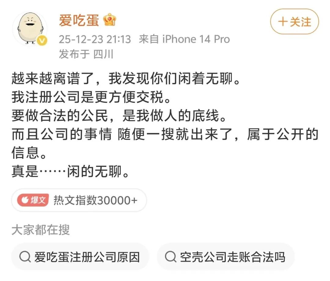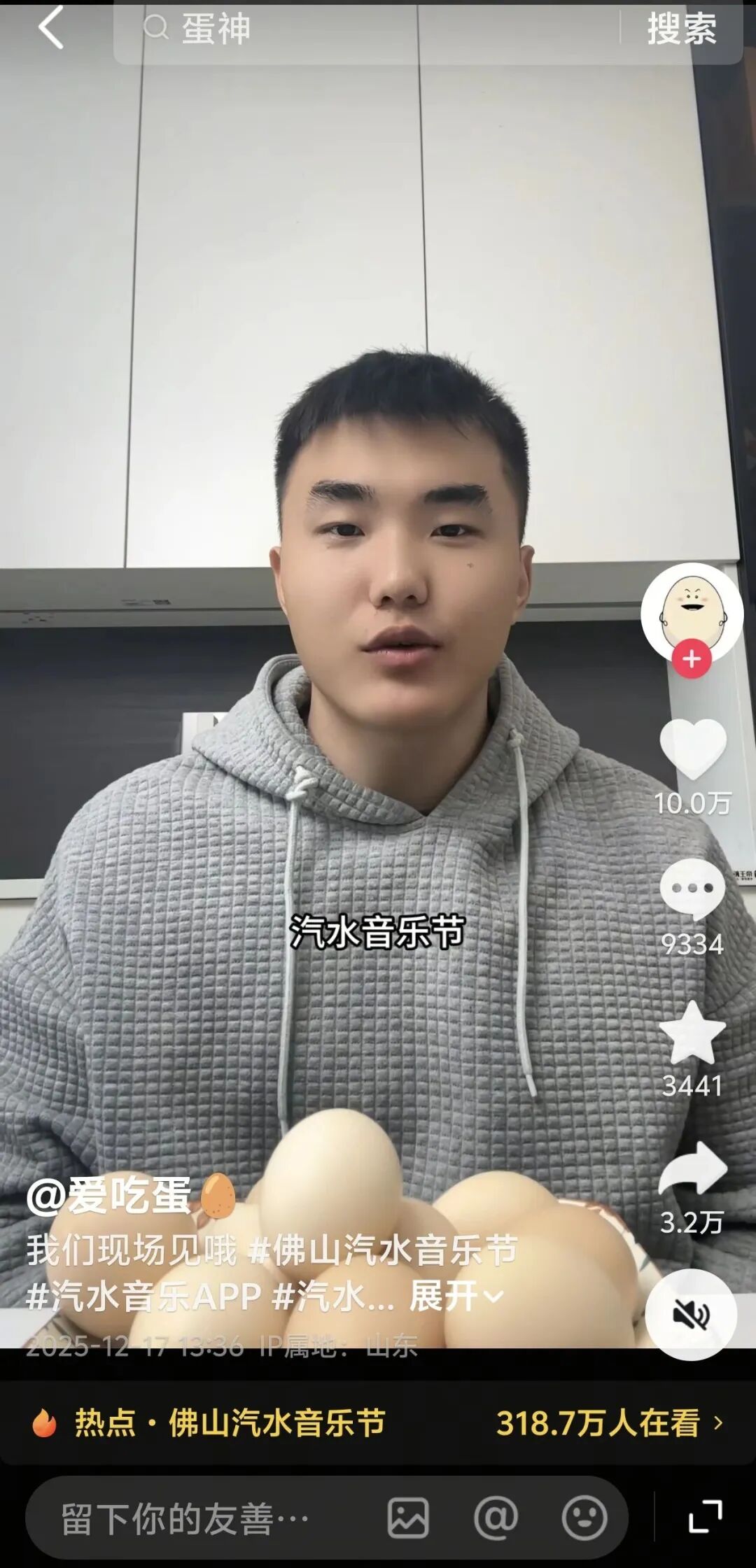 这条看似平常的评论,让一位山东青年冯昌绪(网名“爱吃蛋”)在短短几天内粉丝暴涨超400万,被网友称为“蛋神”,并成为2025年底关注度最高的现象级网红。